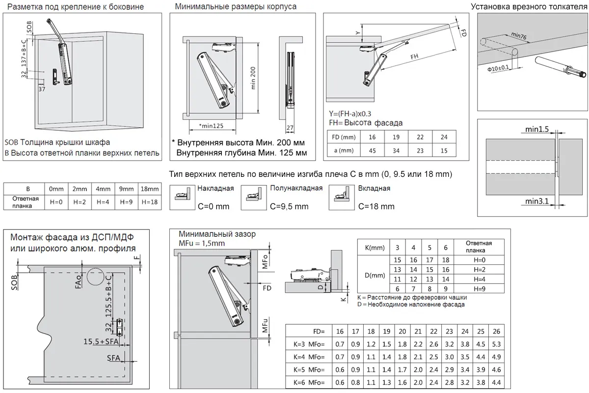 Минимальная глубина шкафа 125 мм.