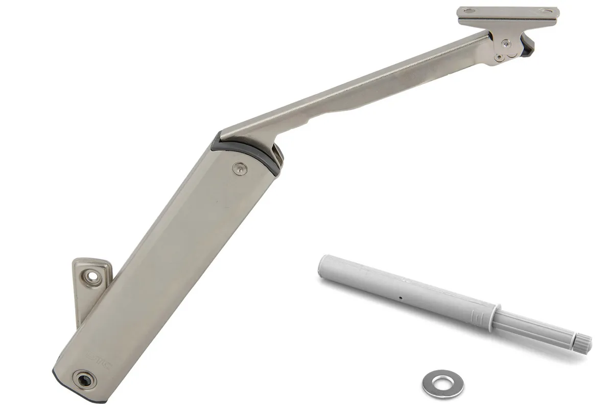 Легкое открывание благодаря продуманной конструкции пружинного рычага, которая позволяет двери открываться без усилий и оставаться открытой в любом положении. Встроенная регулировка усилия для компенсации размера и веса двери.